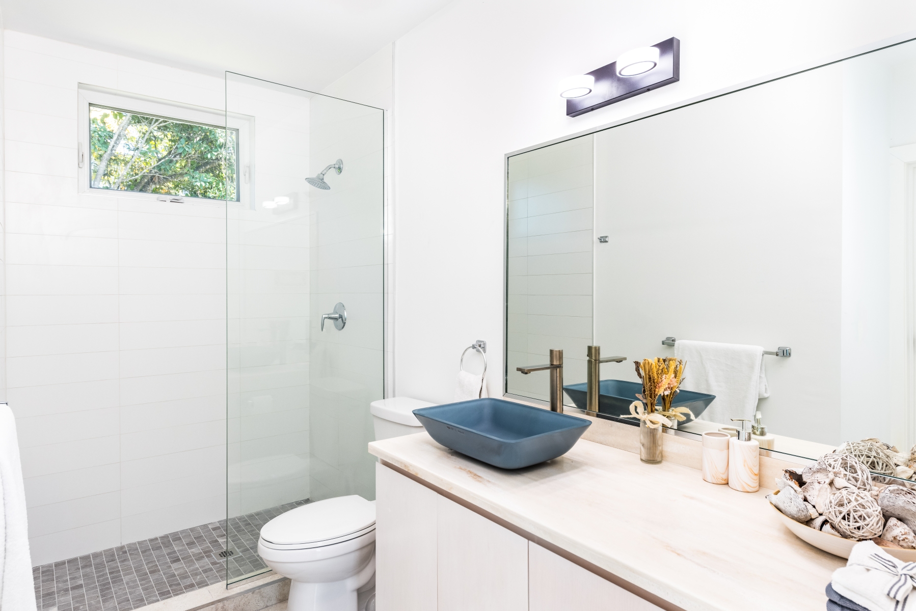 Inside, you’ll find a fully equipped kitchen, spacious living area, modern bathrooms, and a private outdoor space perfect for morning coffee or evening cocktails. The interiors are tastefully decorated with coastal touches, creating a relaxed and inviting atmosphere.